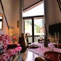 The apartment is thoughtfully designed to combine comfort and practicality. The entrance cabin features two cozy bunk beds, while the mezzanine offers a single bed in an alcove and a double bed in a private bedroom. The living room, complete with a sofa bed, is bathed in natural light from the large bay window, creating a welcoming space to relax after a day of adventure. A well-equipped kitchenette, Wi-Fi, a dishwasher, and even a small washing machine ensure all the conveniences of home. The property also includes a ski and boot room, a garage, and ample storage space for your gear.