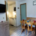 The apartment, situated on the third floor of the Val Blanc I residence, is thoughtfully designed to maximize comfort and functionality. The cozy living room, complete with a kitchenette and dishwasher, opens onto a spacious balcony where you can unwind and soak in the mountain air. The sleeping arrangements include a small bedroom with a double bed, a separate sleeping alcove with bunk beds, and an additional sofa bed in the living room, making it ideal for families or small groups. A bathroom, separate toilet, and a ski locker add to the convenience, while the building’s elevator ensures easy access.