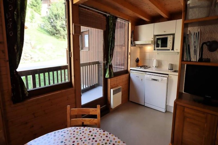 In the heart of the picturesque Beaufortain region, this charming apartment in Arêches-Beaufort invites you to experience the serene beauty of the French Alps. Surrounded by majestic peaks and lush alpine meadows, this cozy retreat offers a tranquil escape for up to four guests. Whether you’re seeking outdoor adventures or peaceful relaxation, the breathtaking scenery sets the stage for unforgettable moments. Wake up to crisp mountain air and the soothing sounds of nature, and let the magic of the Alps rejuvenate your spirit. \n\nThis bright, mezzanine-level apartment is thoughtfully designed for comfort and convenience. Located on the first floor of Chalet B, it features a welcoming living room with a dining area and a well-equipped kitchenette, including a dishwasher, refrigerator, electric oven, and coffee maker. The ground floor also includes a bathroom, separate toilet, and a terrace perfect for soaking in the alpine views. Upstairs, the sleeping arrangements include a semi-open space with a futon bed and a closed bedroom with twin beds, both illuminated by natural light. Additional amenities such as Wi-Fi, a television, and shared laundry facilities ensure a hassle-free stay. \n\nArêches-Beaufort is a haven for outdoor enthusiasts. In winter, the nearby ski slopes offer thrilling runs, while summer transforms the region into a paradise for hiking, cycling, and exploring scenic trails. The charming village is just a short stroll away, where you’ll find local shops, traditional restaurants, and the warm hospitality of Savoyard culture. Don’t miss the chance to taste the renowned Beaufort cheese, a true delicacy of the region. \n\nWhether you’re seeking adventure or tranquility, this apartment provides the perfect base to immerse yourself in the beauty of Savoie Mont Blanc. Create lasting memories in a setting that combines alpine charm with modern comforts.