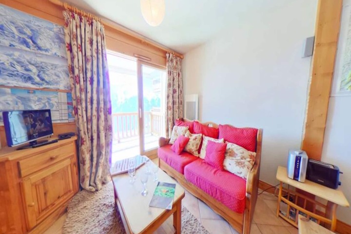 In the serene embrace of the Beaufortain mountains, this elegant apartment offers a perfect blend of alpine charm and modern comfort. Located just 5.6 km from the heart of Les Saisies, the residence boasts a heated indoor swimming pool, available during peak winter and summer seasons, ensuring relaxation after a day of adventure. The south-east facing balcony invites you to soak in the tranquil mountain views, while the covered parking space adds convenience to your stay. This is a retreat crafted for those seeking a peaceful yet invigorating getaway. \n\nThe apartment, situated on the second floor of the residence, is thoughtfully designed to accommodate up to five guests. The master suite features a plush queen-size bed and an en-suite shower room, offering a private sanctuary. A second bedroom includes two bunk beds and a single bed, ideal for families or groups. The open kitchen seamlessly connects to the living room, creating a warm and inviting space for meals and relaxation. With a separate bathroom and WC, the layout ensures both comfort and practicality. Classified as a 2-star furnished tourist accommodation, this property guarantees quality and style for your holiday.\n\nBeyond the residence, Les Saisies beckons with its charming village atmosphere and a wealth of activities. Whether skiing on pristine slopes in winter or hiking through lush trails in summer, the region offers endless opportunities for outdoor enthusiasts. The nearby Beaufortain valley is renowned for its breathtaking landscapes and traditional alpine culture, making it a destination to remember.\n\nChoose this apartment for its unique blend of tranquility, convenience, and access to the wonders of the French Alps. Create unforgettable memories in a setting that celebrates the beauty of nature and the joy of exploration.