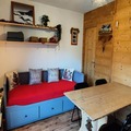 High above the charming village of Arèches, this cozy studio offers a peaceful retreat on the sunny southwest slope of the Roche Plane Residence. With its inviting ambiance and thoughtful layout, this property is perfect for couples or small families seeking a tranquil alpine getaway. Imagine sipping your morning coffee on the spacious terrace, surrounded by breathtaking mountain views, as the first rays of sunlight illuminate the valley below. Whether you’re here to ski, hike, or simply relax, this studio provides the ideal base for your adventures. \n\nDesigned to accommodate up to three guests, the 19m² studio features a cleverly arranged living space. The entrance hall includes bunk beds, leading into a bright living room with a comfortable 160x200 sofa bed and a fully equipped kitchen. The bathroom is modern and functional, ensuring a comfortable stay. Guests will appreciate the convenience of a covered parking space and a ski storage area, making winter holidays hassle-free. Additional amenities such as WiFi, childcare equipment, and linen rental are available to enhance your stay. \n\nLocated just a five-minute walk from local shops and amenities, the studio is perfectly situated for exploring the village’s warm, welcoming atmosphere. In winter, the free ski bus stop is only 80 meters away, providing easy access to the slopes. Arèches is renowned for its family-friendly ski area and picturesque trails, offering something for everyone, from beginners to seasoned adventurers. \n\nWhether you’re seeking thrilling outdoor activities or serene moments in nature, this studio combines comfort, convenience, and stunning surroundings to create an unforgettable alpine escape. Let the beauty of Arèches inspire your next holiday adventure.