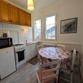 The apartment features a spacious living and dining area, an eat-in kitchen equipped for preparing hearty meals, and two generously sized bedrooms with ample storage. Sleeping arrangements include two double beds and one single bed, comfortably accommodating up to five guests. The bathroom is fitted with a shower and washing machine, while a separate toilet adds convenience. Additional amenities include an outdoor ski locker and two private parking spaces, ensuring a hassle-free stay. Please note that access to the apartment is via stairs, approximately twenty steps, and pets are not allowed.