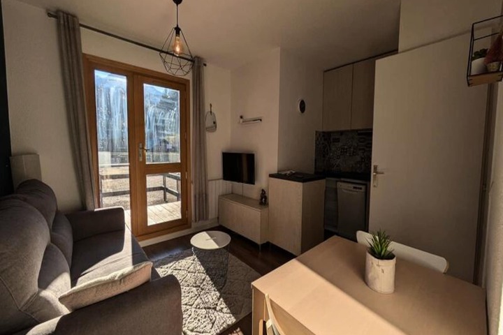 In the heart of the charming Arèches-Beaufort region, this beautifully renovated apartment offers a cozy retreat for up to three guests. Surrounded by breathtaking alpine scenery, it’s the perfect base for exploring the area’s natural beauty and enjoying a tranquil escape. Whether you’re visiting in winter for the snow-covered slopes or in summer for the lush green landscapes, this property promises an unforgettable stay. \n\nStep inside this thoughtfully designed 25m² apartment and discover a modern, welcoming space. The bright living room, featuring a comfortable rapido sofa bed, opens onto a spacious terrace where you can soak in the stunning views of the surrounding peaks. The fully equipped kitchenette includes a dishwasher, a combination microwave oven, and a cozy island for casual dining. A separate bedroom with a double bed ensures restful nights, while the modern bathroom with a bathtub adds a touch of luxury. Ample storage in the entrance hall ensures a clutter-free stay, and additional amenities like a TV and a ski locker provide extra convenience.\n\nLocated within the friendly Val Blanc II residence, the apartment is just a short walk from the ski slopes and the village center. In summer, guests can enjoy access to the shared swimming pool, making it an ideal destination year-round. Nearby, you’ll find charming local shops, restaurants, and outdoor activities that showcase the best of the region. From hiking trails to ski adventures, Arèches-Beaufort offers something for everyone.\n\nWhether you’re seeking adventure or relaxation, this modern and functional apartment is your gateway to the enchanting beauty of the French Alps. Book your stay today and create lasting memories in this idyllic alpine retreat.