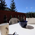 The apartment features a functional layout with a welcoming living room that includes a pull-out sofa, a well-equipped kitchenette complete with a dishwasher, and a snug bedroom with a double bed. The shower room is modern and practical, while the west-facing balcony provides a stunning view of the surrounding peaks, perfect for unwinding after a day of exploration. During the summer months, guests can enjoy access to the shared swimming pool in the residence, adding a refreshing touch to their holiday.
