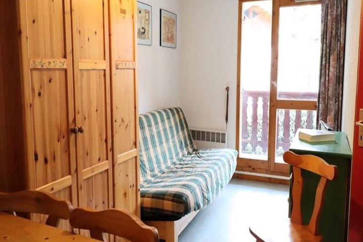 In the heart of the picturesque French Alps, this charming 28m² apartment offers the perfect alpine escape for couples or small families. Situated in the sought-after Val Blanc II residence, you’ll find yourself just a short stroll from the ski slopes and the vibrant village center, making it an ideal base for both winter and summer adventures. With its east-facing balcony, enjoy serene mornings soaking in the crisp mountain air and delightful views of the surrounding village. \n\nThoughtfully designed for comfort and functionality, the apartment features a cozy living room with a sofa bed, a cabin-style entrance with bunk beds, and a private bedroom with a double bed. The fully equipped kitchenette, complete with a dishwasher, allows you to prepare hearty meals after a day of exploring. A separate bathroom and toilet add to the convenience, while the residence’s elevator ensures easy access to your first-floor retreat. During the summer months, guests can take advantage of the shared swimming pool, perfect for unwinding under the alpine sun. \n\nThe location is unbeatable, with everything you need just steps away. From ski schools and rental shops in winter to hiking trails and mountain festivals in summer, the area offers year-round excitement. The nearby village brims with charming restaurants, bakeries, and local markets, allowing you to savor authentic French alpine cuisine. For those seeking relaxation, the tranquil surroundings and fresh mountain air provide a rejuvenating escape from the everyday. \n\nWhether you’re carving through pristine slopes, exploring scenic trails, or simply enjoying the peaceful ambiance of the Alps, this apartment promises a memorable stay. With its unbeatable location and cozy amenities, it’s the perfect choice for your next alpine getaway.