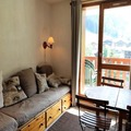 The apartment, located on the second floor of the Val Blanc II residence, is thoughtfully designed for both functionality and comfort. The living area opens onto the balcony, creating a bright and inviting space to unwind after a day of exploration. A well-equipped kitchenette, complete with a dishwasher, makes meal preparation a breeze, while the cozy bedroom with a double bed and a cabin-style entrance with bunk beds provide restful sleeping arrangements. Modern amenities such as a TV and an elevator add to the convenience, and during the summer months, guests can enjoy access to the residence's shared swimming pool, perfect for cooling off after a day in the sun.