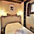 Spanning 50 m², the apartment is thoughtfully designed to accommodate up to seven guests. On the ground floor, you’ll find a cozy dining area with a fully equipped kitchenette featuring a microwave, refrigerator, and dishwasher, as well as a comfortable double bedroom. The mezzanine level opens to a spacious living room with two sofa beds, leading to a charming bedroom with bunk beds, ideal for children. Modern amenities such as a flat-screen TV, DVD player, stereo system, and a selection of games and books ensure entertainment for all ages. The property also includes a ski locker and a fully equipped bathroom with drying facilities, adding convenience to your stay.