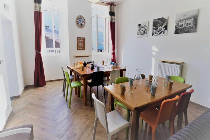Set amidst the stunning landscapes of the French Alps, this spacious and welcoming cottage offers an unforgettable retreat for groups and families alike. With its charming alpine design and thoughtful amenities, it’s a haven for relaxation and adventure. Whether you’re planning a winter ski holiday or a summer escape, this property provides the perfect base to explore the breathtaking surroundings. Imagine waking up to crisp mountain air and panoramic views, ready to embark on a day filled with outdoor activities or simply unwind in the tranquil ambiance of the chalet. \n\nThe cottage boasts a well-thought-out layout across multiple levels, ensuring comfort and convenience for up to 15 guests. On the ground floor, you’ll find a professional-grade kitchen equipped with stainless steel appliances, perfect for preparing meals for large groups. The adjoining dining room comfortably seats 15, making it ideal for shared moments over delicious food. The ground floor also features a bedroom with reduced mobility access and an en-suite bathroom. Upstairs, six bedrooms with single or bunk beds provide cozy sleeping arrangements, each with its own bathroom. A large meeting room under the eaves offers a versatile space for gatherings or activities, while the basement houses a ski room, laundry facilities, and additional storage. \n\nOutside, the property shines with its charming garden furniture, barbecue area, and ample parking spaces, including three covered spots. Whether you’re enjoying a sunny afternoon barbecue or preparing for a day on the slopes, the outdoor amenities cater to every need. Nearby, you’ll find access to ski slopes, hiking trails, and picturesque alpine villages, ensuring endless opportunities for exploration and adventure. \n\nWith its blend of comfort, practicality, and proximity to nature, this cottage is more than just a place to stay—it’s a gateway to unforgettable memories in the heart of the French Alps.