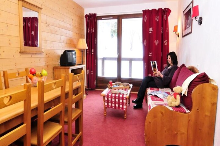 This well-appointed accommodation features a cozy living room with a pull-out sofa bed, an equipped kitchen for home-cooked meals, and multiple sleeping arrangements, including a double bedroom and rooms with single beds, ensuring comfort for families or groups. Modern amenities such as a semi-indoor/outdoor heated pool, a fitness room, and a sauna are at your disposal, promising moments of pure relaxation after a day on the slopes. Additional conveniences like Wi-Fi, pet-friendly options, and baby kits make your stay even more accommodating.