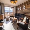 High above the bustling resort, where the majestic peaks of Aiguilles d'Arves and La Meije paint the horizon, lies the Odyssée residence—a haven for ski enthusiasts and mountain lovers alike. Imagine waking up to the sun's golden rays streaming through your south-facing windows, stepping onto your balcony to breathe in the crisp alpine air, and gazing at panoramic views that inspire adventure and tranquility in equal measure. This is where unforgettable memories are made, surrounded by the beauty of the French Alps. \n\nThe apartment, spanning 88m², is a masterpiece of warm, rustic charm with old wood and stone accents. Designed to accommodate up to eight guests, it features a spacious living room that opens onto a balcony with breathtaking views. The fully equipped kitchen and cozy lounge/dining area invite you to share meals and moments with loved ones. The first floor boasts a queen-size bedroom with its own bathroom and TV, while upstairs, two additional bedrooms—one with three single beds and a trundle bed, and another with a queen-size bed and TV—ensure comfort for all. Modern amenities like Wi-Fi, a ski locker with boot dryer, and reserved parking spaces add to the convenience, while end-of-stay cleaning and linen rentals are included for a stress-free experience. \n\nStep outside, and the slopes are at your doorstep. Ski in and ski out access means you’re seconds away from the snow front and main lifts, while a nearby shuttle stop ensures easy exploration of the resort. Pedestrian access is facilitated by a staircase, making it simple to reach shops, restaurants, and après-ski activities. Whether you’re here for winter sports or summer hikes, the region offers endless opportunities for adventure and relaxation. \n\nBook now with Altitude 1750 and enjoy exclusive perks like discounted lift passes and ski equipment rentals when reserved in advance. Let the Odyssée residence be your gateway to the magic of the Alps—a place where every moment feels extraordinary.