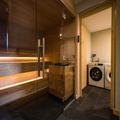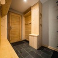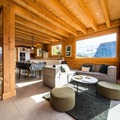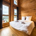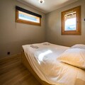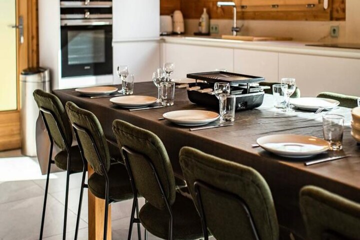 Step into a world of sophistication as you enter the chalet from the garden level, where a secure outdoor ski closet and boot dryers for 12 pairs ensure convenience after a day on the slopes. The ground floor features a cozy double bedroom, a dormitory with two bunk beds (sleeps 4), a modern bathroom with double sinks, a separate toilet, a laundry room, and a rejuvenating sauna. The spacious living area on the same level opens onto a sunlit terrace, where breathtaking mountain views await. The fully equipped kitchen, complete with a dishwasher, induction hob, oven, and microwave, makes preparing meals a delight, while the inviting seating and dining areas provide the perfect setting for relaxation.