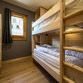 Step inside and discover a thoughtfully designed space that caters to every need. The chalet spans three levels, starting with a garden-level entrance featuring secure ski storage and boot dryers for up to 12 pairs. The ground floor boasts a cozy double bedroom, a dormitory with two bunk beds (sleeps 4), a modern bathroom with double sinks, a separate toilet, a laundry room, and a rejuvenating sauna. The heart of the home is the spacious living area, where a fully equipped kitchen, dining room, and TV lounge open onto a sunlit terrace with panoramic views. Upstairs, the master suite offers its own bathroom and a private south-facing balcony, while additional bedrooms and a mezzanine dormitory provide ample sleeping space for up to 12 guests.