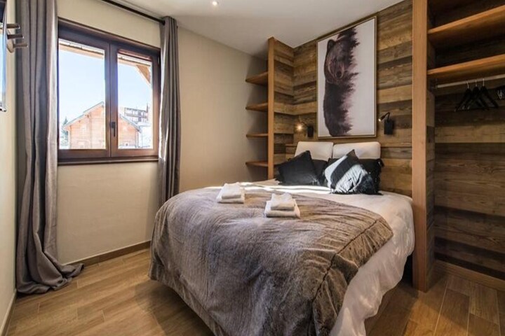 High above the picturesque slopes of the French Alps, this luxurious chalet invites you to experience an unforgettable mountain escape. Bathed in natural light from its south-facing design, the property offers breathtaking views that stretch across the serene alpine landscape. Whether you're seeking adventure or relaxation, this chalet provides the perfect setting for cherished moments with family and friends. From the moment you arrive, you'll feel the warmth and sophistication of its thoughtfully curated decor, blending modern comfort with timeless alpine charm. \n\nThe chalet spans three floors, each designed to cater to your every need. On the garden level, you'll find a convenient ski room for secure storage, alongside a laundry room equipped with a washer and dryer. The ground floor features a master suite with a queen-size bed and private shower room, a dormitory with three bunk beds accommodating up to six guests, a second shower room, and two separate toilets. The first floor boasts two elegant master suites, one with a king-size bed and the other with a queen-size bed, each with its own shower room and separate toilet. A sauna and pantry complete this level, offering relaxation and practicality. The crowning glory is the attic living area on the top floor, where a cozy lounge, a spacious dining room, and a fully equipped kitchen await. The kitchen is outfitted with premium appliances, including two dishwashers, a 90cm induction hob, oven, and microwave, ensuring effortless meal preparation. \n\nLocated in the heart of the Alps, the chalet is perfectly positioned for ski enthusiasts, with lift passes and ski lesson cards conveniently delivered to your door upon arrival. Guests who book in advance can enjoy exclusive discounts on ski equipment rentals and lift passes through trusted partners. Beyond skiing, the region offers a wealth of activities, from scenic hiking trails to vibrant local markets showcasing Savoyard specialties. \n\nWith end-of-stay cleaning, bed linen, and bathroom linen included, this chalet ensures a seamless and stress-free holiday experience. Whether you're unwinding in the sauna after a day on the slopes or sharing a meal in the inviting dining area, every moment here is designed to create lasting memories. Book now and let the magic of the French Alps envelop you in a world of beauty and tranquility.