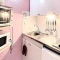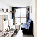 This 28m² studio is thoughtfully designed to accommodate up to four adults and one child, featuring a sleeping alcove with bunk beds and a pull-out bed, as well as a comfortable sofa bed in the living area. The kitchenette is equipped with all the essentials, including electric hobs, a microwave, a coffee maker, and a refrigerator, perfect for preparing meals after a day on the slopes. While the apartment does not have a balcony, the valley view from the first floor offers a picturesque backdrop to your alpine escape. Guests also enjoy complimentary access to the heated swimming pool, adding a touch of relaxation to their stay. Additional amenities include a ski locker, outdoor parking, and wheelchair accessibility with ramps and elevators.