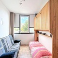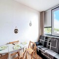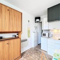 Designed for up to three guests, this well-maintained 16m² studio is thoughtfully equipped for comfort and convenience. The living area features a sofa bed and a single bunk bed, complemented by a flat-screen television for cozy evenings in. The kitchenette includes all the essentials, from a two-burner ceramic hob to a microwave, electric coffee maker, and even raclette and fondue sets for enjoying local culinary traditions. A bathroom with a toilet and a storage cupboard complete the layout, ensuring a practical and pleasant stay. Guests also have complimentary access to the residence's heated swimming pool, perfect for relaxing after a day on the slopes.