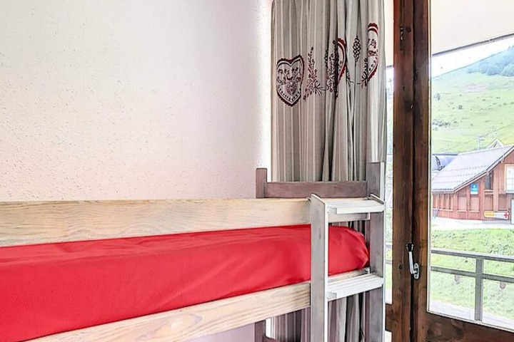 In the heart of the bustling resort, this charming apartment in Baïkonour Residence offers the perfect alpine escape with breathtaking views of the slopes and ski-in/ski-out convenience. Imagine waking up to the sight of snow-dusted peaks, stepping onto your private balcony to breathe in the crisp mountain air, and heading straight to the Sybelles Express chairlift just outside your door. Whether you're here for winter thrills or summer serenity, this residence places you at the center of it all. \n\nInside, the apartment’s thoughtful design ensures comfort and practicality for up to six guests. The spacious living room invites you to unwind with its cozy sofa, flat-screen TV, and dining area for six, while the fully equipped kitchenette makes meal preparation a breeze. With a mini-oven, microwave, ceramic hob, dishwasher, and Nespresso® machine, every detail has been considered. The sleeping arrangements include a double bed in the master bedroom, bunk beds in the second bedroom, and two single beds in the alcove, ensuring restful nights for everyone. A modern bathroom with a bathtub adds to the convenience, while the ski locker and access to a heated swimming pool enhance your stay. \n\nStep outside to explore the resort’s vibrant atmosphere. The shopping arcade at the foot of the residence offers everything from ski rentals to local delicacies, while the ski school is just 20 meters away, making it ideal for families and beginners. In summer, the slopes transform into scenic hiking trails, inviting you to discover the beauty of the Alps. \n\nWhether you're chasing powder or seeking tranquility, this apartment combines unbeatable location, modern amenities, and alpine charm for an unforgettable getaway.