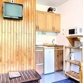 The 31m² studio is thoughtfully designed to accommodate up to four guests. The bright living area features a comfortable double sofa bed, while a curtained alcove with bunk beds offers a cozy sleeping nook for children or friends. A well-equipped kitchenette with electric hobs and a microwave allows you to prepare meals with ease, and the bathroom includes a bathtub and washing machine for added convenience. The studio is equipped with a TV, ample storage, and a ski locker on the lower level. For those staying a week or longer, enjoy complimentary access to the heated swimming pool—a perfect way to unwind after a day on the slopes.