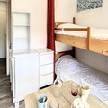 Inside, the 22m² studio is thoughtfully arranged to accommodate up to four guests. The living area features a comfortable double sofa bed and two bunk beds, separated by a curtain for added privacy. A compact yet fully equipped kitchenette invites you to prepare hearty meals after a day on the slopes, complete with electric hobs, a mini-oven, microwave, dishwasher, and coffee maker. Modern amenities like a flat-screen TV and free Wi-Fi ensure a relaxing and connected stay, while the heated swimming pool adds a touch of luxury to your alpine escape.