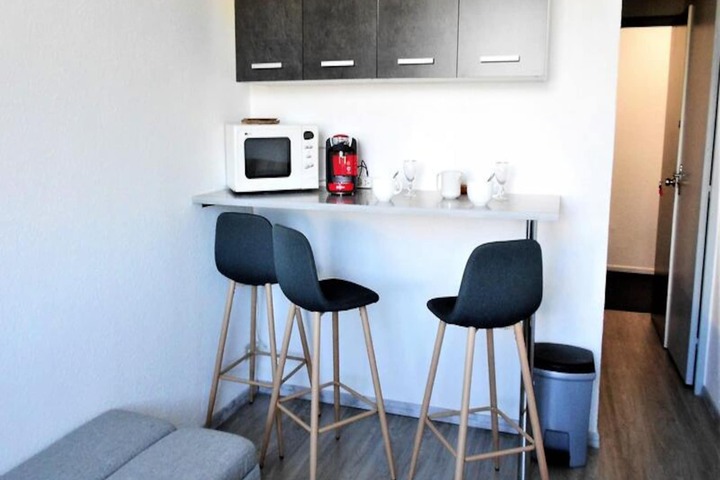 Awaken to the serene beauty of the French Alps in this charming studio apartment, perfectly situated in the Zodiaque Residence of Les Arcs 1800. With breathtaking mountain views from the sixth floor and ski-in/ski-out access, this cozy retreat offers an unparalleled alpine experience. Whether you're here for winter adventures or summer escapes, the location places you steps away from the snow front, ski lifts, and a vibrant array of local amenities. The residence is ideal for couples seeking a tranquil yet convenient getaway amidst the majestic peaks of the Tarentaise Valley. \n\nInside, the studio has been thoughtfully renovated to provide modern comfort and style. The 16m² space features a welcoming living area with a plush sofa bed, a flat-screen television, and a well-equipped kitchenette with a ceramic hob, microwave, and electric coffee maker. The sleek shower room adds a touch of luxury, ensuring a refreshing start to your day. While there is no balcony, the east-facing windows frame stunning views of the surrounding mountains, inviting you to soak in the alpine ambiance. Guests also enjoy access to a heated swimming pool, adding a relaxing dimension to their stay. \n\nThe Zodiaque Residence boasts convenient amenities such as ski lockers, outdoor parking, and proximity to shops, restaurants, and the ESF ski school. Families will appreciate the nearby daycare center and children's playground, while adventurers can explore the extensive Paradiski domain. In summer, the area transforms into a haven for hiking, biking, and nature excursions. \n\nWhether you're carving through pristine slopes or basking in the summer sun, this studio is your gateway to unforgettable alpine memories. Let the charm of Les Arcs 1800 and the comforts of this residence create the perfect backdrop for your mountain escape.