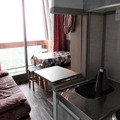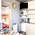 The thoughtfully designed 25 m² apartment comfortably accommodates up to five guests. It features a well-equipped kitchenette with a two-burner electric hob, Senseo coffee machine, and fondue set, making it easy to prepare meals after a day on the slopes. The living room includes a double sofa bed, flat-screen TV, and dining table for five, while the separate bedroom offers a double bed and a mezzanine bed, ensuring a restful night's sleep. The bathroom is equipped with a bathtub, sink, and toilet, providing all the essentials for a comfortable stay. Guests also have access to free Wi-Fi and a heated swimming pool, adding extra touches of luxury to their alpine escape.