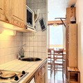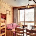 Inside, the 22m² studio is thoughtfully designed to maximize comfort and functionality. The living area features a plush 160cm sofa bed, two cozy bunk beds, and a flat-screen TV, creating a welcoming space to unwind after a day on the slopes. The kitchenette is fully equipped with modern appliances, including a ceramic hob, dishwasher, microwave, and even a raclette grill for authentic alpine dining. A south-facing balcony invites you to soak in the sun and the stunning mountain vistas, while free Wi-Fi keeps you connected throughout your stay. Guests also have complimentary access to the heated swimming pool, perfect for relaxing after a day of skiing or hiking.