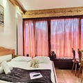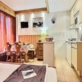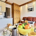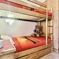 Inside, the 30m² space is thoughtfully designed to maximize comfort and functionality. The living room features a trundle bed for two, while a separate sleeping area offers cozy bunk beds, making it ideal for families or small groups. The kitchenette, equipped with an electric stovetop, refrigerator, dishwasher, and microwave, allows you to prepare meals with ease. After an active day outdoors, unwind in the inviting living space with a television or soak in the bathtub to rejuvenate. Additional conveniences include a ski locker for your gear and the option to rent bed linen and towels for a hassle-free stay.