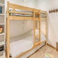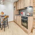 Inside, the apartment combines modern comfort with alpine charm. The 38 m² space features a south-facing terrace, offering stunning views and a sunlit ambiance. The layout includes a cozy bedroom with a double bed and storage, a cabin with bunk beds, and a living room with a convertible sofa bed. The open-plan kitchen is fully equipped with a refrigerator, ceramic hobs, oven, microwave, and dishwasher, making meal preparation a breeze. Additional amenities such as a ski boot drying heater, walk-in shower, and private ski locker ensure a seamless stay.