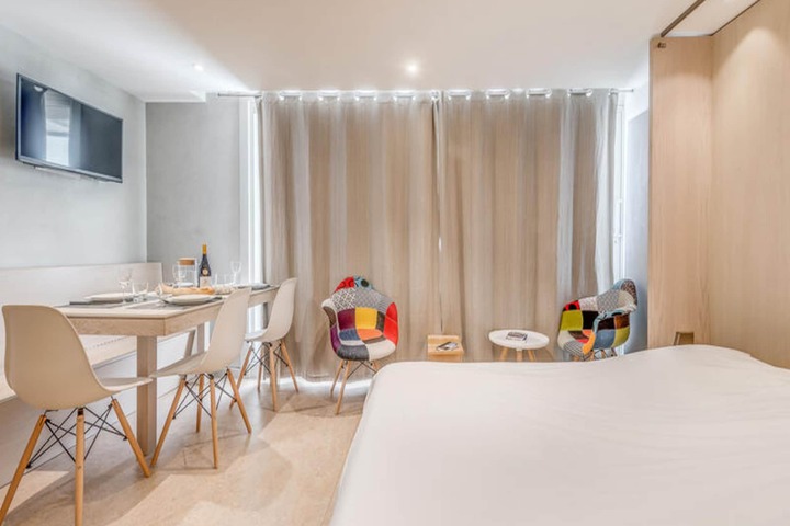 Completely renovated, the 40m² apartment is designed for comfort and style. The living area features a large fold-down double bed, a dining space, and a fully equipped kitchen with modern appliances like a ceramic hob, microwave, and dishwasher. The cozy bedroom, with three single beds and a private shower room, ensures restful nights after a day of adventure. Additional amenities include a heated cabinet for ski boots, a separate bathroom, and an east-facing balcony where you can soak in the morning sun.