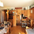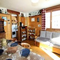 Chalet Bobech Apartment No. 3 is a cozy, 70m² space designed to accommodate up to six guests. Its warm wooden interiors and antique furnishings create a welcoming atmosphere, while the large east- and south-facing windows flood the living spaces with natural light. The apartment features a living room with a flat-screen TV, a dining area, and a fully equipped kitchen with modern appliances. Two bedrooms provide flexible sleeping arrangements, including a double bed and single bed in one room and a double bed with an en-suite bathroom in the other. Additional amenities include a ski storage area, free Wi-Fi, and a terrace that opens to breathtaking alpine views.