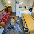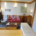 Step into this warm and renovated 3-room apartment, designed to accommodate up to seven guests. The dual-aspect layout ensures a cozy yet spacious atmosphere, with a south-facing balcony that invites you to soak in the alpine beauty. The apartment features a comfortable living room with a flat-screen TV and a single sofa bed, a dining area with an open kitchen equipped with modern amenities, and a variety of sleeping arrangements including bunk beds, single beds, and a sleeping alcove. Two bathrooms and a separate toilet add to the convenience, making it an ideal choice for families or groups of friends.