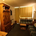 This 24m² studio, part of a nine-story residence with an elevator, comfortably accommodates up to four guests. The thoughtfully designed space features two bunk beds in the entrance hall and two single beds in the living room, making it ideal for families or small groups. The kitchenette is equipped with essential appliances, including a refrigerator, oven/microwave combination, and dishwasher, allowing you to prepare hearty meals after a day on the slopes. Relax in the cozy living area with a TV, DVD player, and radio, or step out onto the south-facing balcony to soak in the alpine sun. The bathroom includes a bathtub and vanity, with a separate toilet for added convenience.