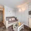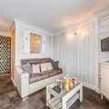 Step inside this thoughtfully designed 26m² space, where modern comfort meets alpine charm. The studio accommodates up to four guests, featuring a cozy sleeping alcove with bunk beds and a living room with a comfortable sofa bed. The open-plan kitchen is fully equipped with a stovetop, refrigerator, microwave, dishwasher, and kettle, making it easy to prepare meals after a day on the slopes. The large bay window floods the space with natural light, creating a warm and inviting atmosphere. Additional amenities include a walk-in shower, separate toilet, and ample storage space for your convenience.
