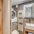 Completely refurbished in 2023, the studio combines modern elegance with thoughtful functionality. The south-facing living room is a cozy haven, featuring a plush sofa bed, a stylish dining area, and a fully equipped kitchen with top-tier appliances, including a bean-to-cup coffee machine for your morning rituals. A separate double cabin with bunk beds ensures restful nights, while the sleek bathroom, complete with a heated towel rail and washing machine, adds a touch of luxury. Additional amenities like a private ski locker, electric boot dryer, and high-speed Wi-Fi make this studio as practical as it is inviting.