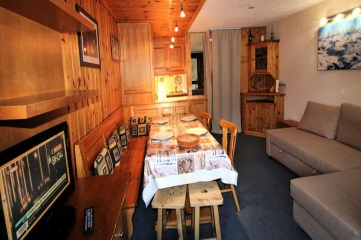 High above the shimmering waters of Tignes Le Lac, this charming studio offers a cozy alpine retreat at an altitude of 2,100 meters. Imagine waking up to breathtaking views of the lake from your private balcony, stepping out into crisp mountain air, and enjoying ski-in/ski-out access to world-class slopes. Whether you're here to carve through powdery pistes or simply soak in the serene beauty of the French Alps, this residence is perfectly positioned to make your holiday unforgettable. \n\nLocated on the third floor of the Residence LE PALAFOUR, this renovated studio comfortably accommodates up to four guests. The cleverly designed layout includes two bunk beds in the entrance and a sofa bed in the living room, ensuring a restful stay for families or small groups. The kitchenette is equipped with modern appliances, including induction hobs, a refrigerator, microwave, and dishwasher, making it easy to prepare hearty meals after a day of adventure. The bathroom features a bathtub, sink, and toilet, while duvets on all beds add a touch of warmth and comfort. \n\nStep outside and discover the vibrant heart of Tignes Le Lac. The residence boasts direct access to ski slopes and is just 50 meters from the LE LAGON water park and 100 meters from the TIGNESPACE sports and cultural complex. A shopping mall within the building offers ski schools, sports shops, a supermarket, bakery, bars, and restaurants, ensuring everything you need is at your fingertips. \n\nWhether you're seeking thrilling winter sports, summer alpine adventures, or simply a tranquil escape surrounded by nature, this studio provides the perfect base for exploring the wonders of Tignes. Let the majestic peaks and sparkling lake inspire your next unforgettable getaway.