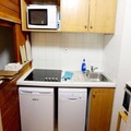 Inside, the studio is thoughtfully designed to maximize comfort and functionality. The living area features a pull-out sofa bed, a dining space, and a TV with fiber optic cable, including Netflix and Amazon Prime, perfect for unwinding after an active day. The separate kitchen is fully equipped with modern appliances, including a refrigerator, dishwasher, ceramic hobs, and a combination oven/microwave, making it easy to prepare hearty meals. A cozy cabin with bunk beds and a bathroom with a heated towel rail add to the apartment’s charm, while the entrance hall provides convenient storage for ski gear.