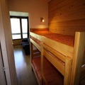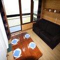 Inside, the studio is thoughtfully designed to accommodate up to four guests. The entrance features practical bunk beds, while the living area boasts a comfortable sofa bed and a flat-screen TV for relaxing evenings after a day on the slopes. The kitchenette is equipped with essential amenities, including a refrigerator, microwave/grill, and electric hotplates, making it easy to prepare hearty meals. A north-facing balcony invites you to soak in the crisp mountain air and admire the stunning alpine scenery. The bathroom, complete with a bathtub, sink, and toilet, ensures a comfortable stay.