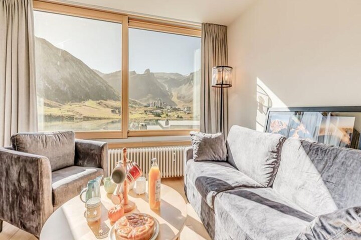 High above the shimmering waters of Tignes Lake, this stylish apartment in the LE PREMOU residence offers a serene alpine retreat with breathtaking views of the Grande Motte glacier and the Toviere massif. Located in the peaceful Crouze district at an altitude of 2100m, it’s just 50 meters from the Chardonnet ski lift and 100 meters from local shops, bakeries, and restaurants. Whether you’re here for thrilling ski adventures or tranquil lakeside moments, this property invites you to embrace the beauty of the French Alps in every season. \n\nStep into a completely renovated, premium-rated apartment designed with modern elegance and comfort in mind. The 42m² space features an open-plan kitchen equipped with ceramic hob, oven, dishwasher, refrigerator, and microwave, ensuring you have everything needed to prepare cozy meals after a day outdoors. The living room, with its large bay windows, floods the space with natural light and offers access to a balcony where you can soak in uninterrupted views of the lake and mountains. The apartment comfortably accommodates up to four guests, with a convertible sofa bed in the living area and a serene bedroom featuring a double bed, closet, and balcony access. \n\nBeyond the apartment, the LE PREMOU residence provides private ski lockers and is perfectly situated for easy access to the slopes. Nearby, the LE LAGON aquatic center and TIGNESPACE sports and cultural complex offer additional leisure options, while the surrounding area boasts a variety of dining and shopping opportunities. In summer, the lake transforms into a hub for water sports and hiking trails, making this location ideal year-round. \n\nWith its premium amenities, stunning views, and unbeatable proximity to both nature and convenience, this apartment is your gateway to unforgettable alpine experiences. Whether you’re seeking adventure or relaxation, LE PREMOU promises a holiday filled with cherished memories.