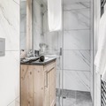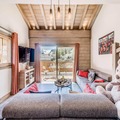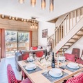 High above the serene alpine landscapes of Tignes 1800, this luxurious duplex apartment offers an unparalleled retreat for mountain enthusiasts. With breathtaking views of the Mont Blanc massif and direct access to the slopes via the Boisses cable car, your alpine adventure begins the moment you step outside. The village itself is bathed in morning sunlight, creating a warm and inviting atmosphere that perfectly complements the charm of its ski school, restaurants, and shops. Whether you’re here to carve through fresh powder or explore the vibrant summer trails, this residence places you in the heart of it all. \n\nSpanning two spacious levels, the apartment comfortably accommodates up to eight guests, making it ideal for families or groups. The first floor features a cozy living area with a sofa bed, armchairs, and a flat-screen TV, all framed by a large bay window that opens onto a furnished balcony. The fully equipped kitchen is a haven for culinary enthusiasts, complete with modern appliances like a Nespresso machine and a dishwasher. Upstairs, you’ll find three beautifully appointed bedrooms, including a master suite with a double bed and ample storage. Two bathrooms, underfloor heating, and thoughtful touches like a ski locker with boot warmers ensure maximum comfort during your stay.\n\nGuests also enjoy exclusive access to the residence’s relaxation area, which includes an indoor heated pool, a children’s paddling pool, a cardio-training room, and a luxurious spa with a jacuzzi, sauna, and hammam. For added indulgence, the \