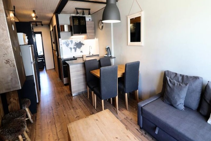 Spanning 39m², the apartment comfortably accommodates up to six guests. The thoughtfully designed layout includes a living room with a sofa bed, a bedroom featuring a bunk bed and trundle bed, and a fully equipped kitchen with an electric hob, oven, and dishwasher. After a day on the slopes, unwind in the warm and inviting living space, or prepare a hearty meal to share with loved ones. Additional amenities such as a ski locker on the ground floor and a separate bathroom and toilet ensure a hassle-free stay. Please note, this is a non-smoking apartment, and pets are not allowed.