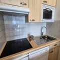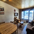 Spanning 45m², this thoughtfully designed two-room apartment comfortably accommodates up to six guests. The living room, equipped with a cozy sofa bed and a television, opens onto a balcony where you can unwind after an active day. The fully equipped kitchen, complete with an oven, induction hob, and dishwasher, makes meal preparation a breeze. A separate bedroom with a double bed and its own balcony, along with a sleeping area featuring a bunk bed, ensures restful nights for everyone. Modern amenities, including a ski locker and an elevator, add to the convenience of your stay.