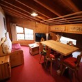 This cozy 2-room apartment, located on the 4th and top floor of the 'Le Rosset' residence, is thoughtfully designed to accommodate up to six guests. The open-plan kitchen is equipped with modern amenities, including an oven and dishwasher, making it easy to prepare hearty meals after a day on the slopes. The apartment features a comfortable bedroom with a double bed and two single beds, as well as a living room with a trundle bed. A separate bathroom and toilet ensure added privacy and convenience. While the west-facing windows fill the space with natural light, the sloping ceilings add a touch of alpine charm. A large cellar provides practical storage for bikes in summer and ski gear in winter.