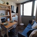 High above the shimmering waters of Tignes Le Lac, this stylish studio apartment invites you to experience the magic of the French Alps in every season. Whether you're drawn to the thrill of skiing down pristine slopes or the serenity of alpine summer adventures, this residence places you at the heart of it all. From its 11th-floor vantage point, the apartment offers a cozy retreat for couples seeking both comfort and convenience in one of the most iconic mountain destinations in Europe. \n\nTastefully renovated and thoughtfully designed, the 12m² studio is equipped with everything you need for a relaxing stay. The living room features a comfortable sofa bed for two, while the compact yet functional kitchen includes an induction hob, refrigerator, and oven—perfect for preparing meals after a day of exploration. The entrance hall provides ample storage, and the modern shower room ensures a refreshing start or end to your day. A ski locker on the ground floor adds practicality for winter guests, making your alpine adventures seamless. \n\nStep outside and find yourself at the foot of the ski slopes, with ski school departure points just moments away. In winter, enjoy preferential rates on Tignes and Val d'Isère lift passes, while summer brings the My Tignes card, unlocking a world of activities from hiking to mountain biking. The vibrant village atmosphere of Tignes Le Lac offers shops, restaurants, and even a swimming pool, ensuring entertainment and relaxation are always within reach. \n\nWhether you're chasing powdery descents or basking in the alpine sun, this charming studio is your gateway to unforgettable memories in the French Alps. With its unbeatable location and cozy ambiance, it’s the perfect choice for couples looking to immerse themselves in the beauty and excitement of Tignes.