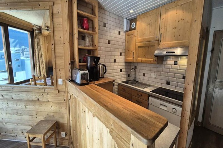 In the vibrant heart of Tignes Val Claret, this charming alpine apartment offers an unbeatable location for ski enthusiasts and mountain lovers alike. Imagine stepping out of your residence and being just 100 meters from the slopes and ski schools, with ski-in/ski-out access making every day on the mountain effortless. The lively atmosphere of Val Claret surrounds you, with shops, bakeries, restaurants, and après-ski bars right at your doorstep, ensuring convenience and entertainment throughout your stay.