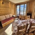 This 58m² apartment, located on the 4th floor of the Curling B Tour residence, is thoughtfully designed to accommodate up to eight guests. The south-facing balcony invites you to soak in the alpine sunshine and stunning views after a day of adventure. Inside, the apartment features a fully equipped kitchen with a dishwasher, oven, and ceramic hob, perfect for preparing hearty meals. The living room includes a trundle bed for two, while the master bedroom boasts a double bed and an en-suite shower room. A second bedroom with bunk beds comfortably sleeps four, making it ideal for families or groups of friends. Additional amenities include a ski locker on the ground floor and a separate bathroom and toilet for added convenience.