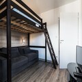 Inside, the recently renovated 75m² apartment spans two levels, combining modern comfort with alpine charm. Accommodating up to eight guests, it features three cozy bedrooms, including a mezzanine with a double bed and another with twin mattresses. The master bedroom boasts an en-suite shower room for added privacy. The open-plan kitchen is fully equipped with an induction hob, oven, microwave, and dishwasher, making it easy to prepare hearty meals after a day on the slopes. A spacious living and dining area invites you to unwind in style, while amenities like Wi-Fi and a washing machine ensure a hassle-free stay.