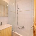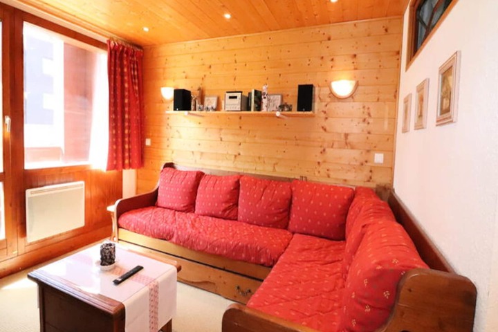 Inside, the apartment spans two levels and is thoughtfully designed to accommodate up to six guests. The ground floor features a cozy living room with plush sofas, a television, and a stereo system, creating a welcoming space to unwind after a day on the slopes. The open kitchen is fully equipped with modern appliances, including a dishwasher, microwave, and a Krups coffee machine, making it easy to prepare hearty meals. A cabin bedroom with bunk beds, a bathroom, and a separate toilet complete the lower level. Upstairs, you’ll find a tranquil double bedroom, an alcove with a trundle bed, and an additional shower room with a toilet, ensuring comfort and privacy for all.