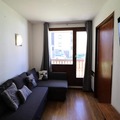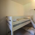 This 23m² studio cabin is thoughtfully designed to accommodate up to four guests. The entrance hall offers practical storage space, while the kitchenette is equipped with a microwave, stovetop, and dishwasher, perfect for preparing hearty meals after a day on the slopes. The living area features a comfortable sofa bed and television, creating a cozy space to unwind. A sleeping alcove with a triple bunk bed (double below, single above) provides a snug yet functional sleeping arrangement. The apartment also includes a bathroom with a separate toilet and a ski locker on the ground floor for added convenience.