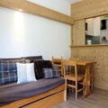 High above the shimmering peaks of the French Alps, this cozy studio cabin in Tignes Val Claret offers an unbeatable ski-in ski-out experience. Imagine waking up to the crisp mountain air, stepping onto your south-facing balcony, and marveling at the panoramic views of snow-dusted slopes. Located at the foot of the funicular leading to the Grande-Motte Glacier at a breathtaking 3,050 meters, this residence places you right in the heart of alpine adventure. Whether you're here for winter thrills or summer exploration, the Rond Point des Pistes B residence is your gateway to unforgettable moments. \n\nDesigned for up to four guests, this 22m² studio cabin combines comfort and practicality. The living room features a pull-out bed for two singles, while a cozy nook with bunk beds provides additional sleeping arrangements. The kitchenette is equipped with four electric hobs, an oven, refrigerator, and dishwasher, making it easy to prepare meals after a day on the slopes. A separate bathroom and toilet ensure convenience, while the south-facing balcony invites you to relax and soak in the alpine ambiance. For added ease, a ski locker is available on the ground floor, and pets are welcome for a small supplement. \n\nStep outside and find everything you need within arm's reach. From ski rental shops and schools to supermarkets, restaurants, and après-ski bars, the lively Tignes Val Claret village ensures you’re never far from excitement. In summer, the My Tignes card unlocks a world of activities, from mountain biking to paddleboarding on serene alpine lakes. Winter or summer, this destination offers endless opportunities to push your limits and embrace the beauty of the mountains. \n\nWhether you're chasing powder on the glacier or exploring scenic trails in the sunshine, this charming studio cabin is your perfect base for an alpine escape. Book now and let the magic of Tignes Val Claret create memories to last a lifetime.