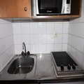 This thoughtfully designed 14 m² studio is perfect for two guests, offering a comfortable and intimate retreat after a day of alpine adventures. The living area features a convenient trundle bed that transforms into two single beds, while the kitchenette is equipped with ceramic hobs, a refrigerator, and a microwave for preparing simple meals. The east-facing balcony invites you to soak in the crisp mountain air and morning sunlight, creating the perfect spot for a quiet coffee or evening relaxation. Additional amenities include a ski locker on the ground floor and easy access via an elevator to the first floor.