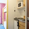 Step into this charming 15m² studio, thoughtfully designed to accommodate two guests. Located on the third floor with elevator access, the west-facing balcony invites you to unwind with views of the surrounding peaks. The living space features a bunk bed, a dining area, and a television for cozy evenings in. The kitchenette is equipped with essentials, including an electric hob, refrigerator, and microwave, ensuring you have everything needed for a comfortable stay. A private shower room and toilet complete the space, while a ski locker on the ground floor keeps your gear secure and ready for adventure.
